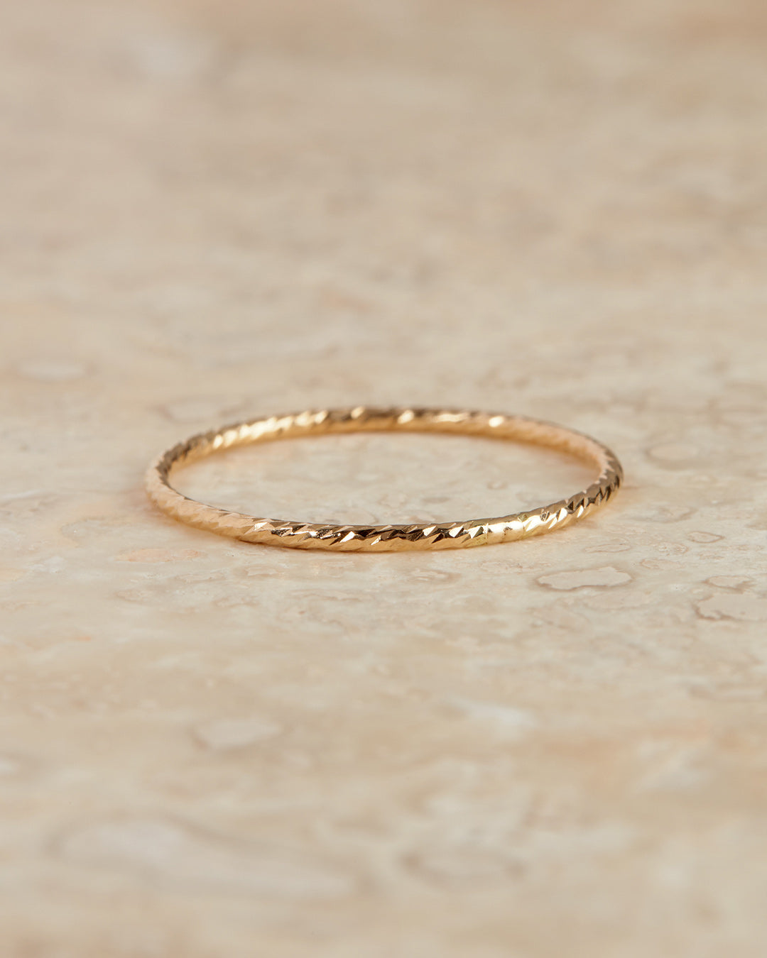 • The Petite Etched Band is the second to last band on the bottom of the stack